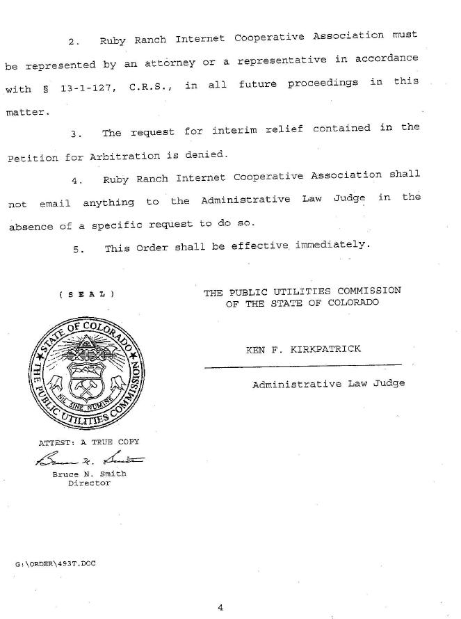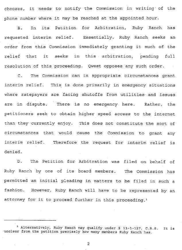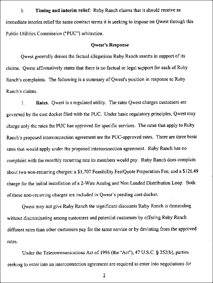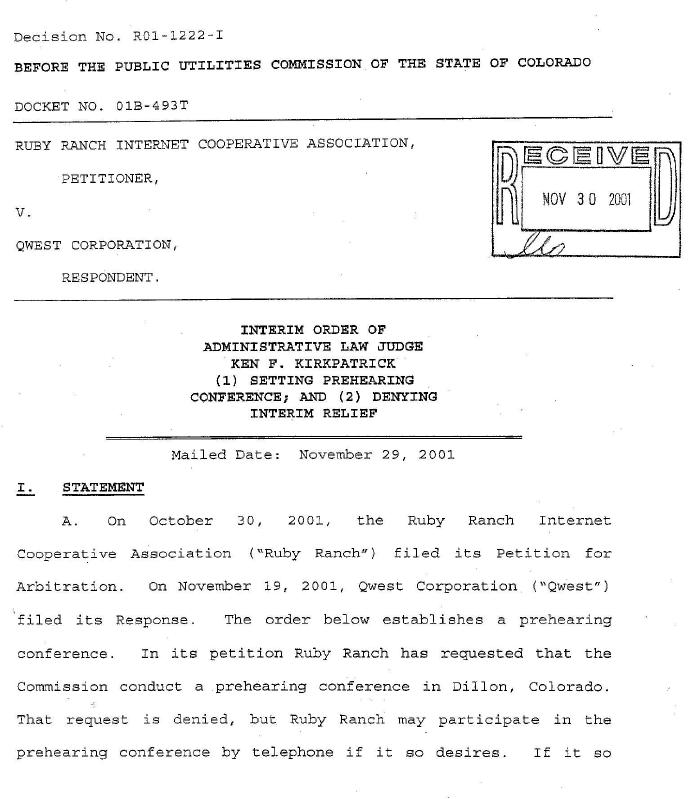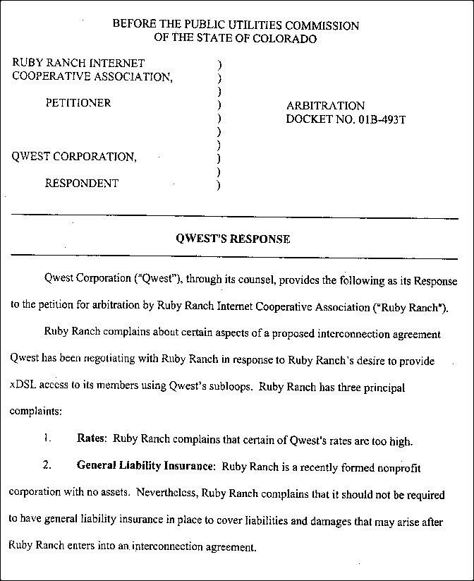 Ruby Ranch Coop v. Qwest, 01B-493T